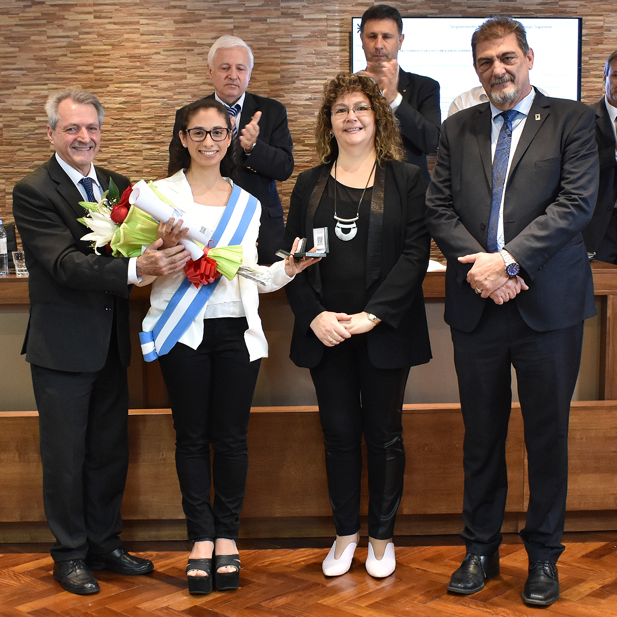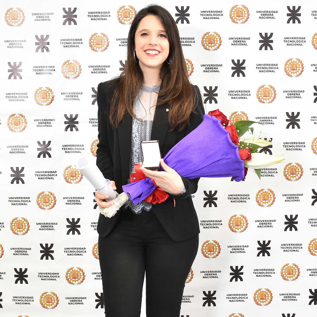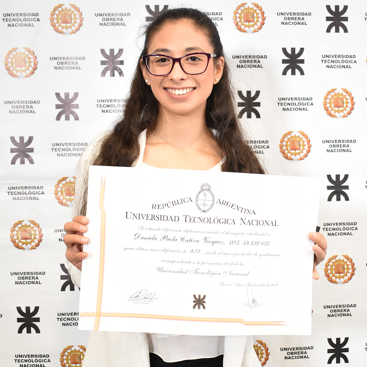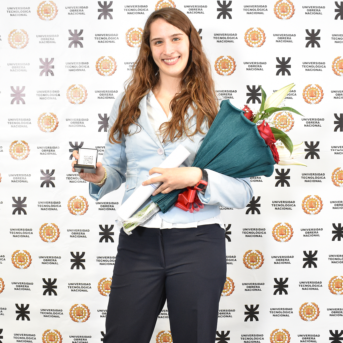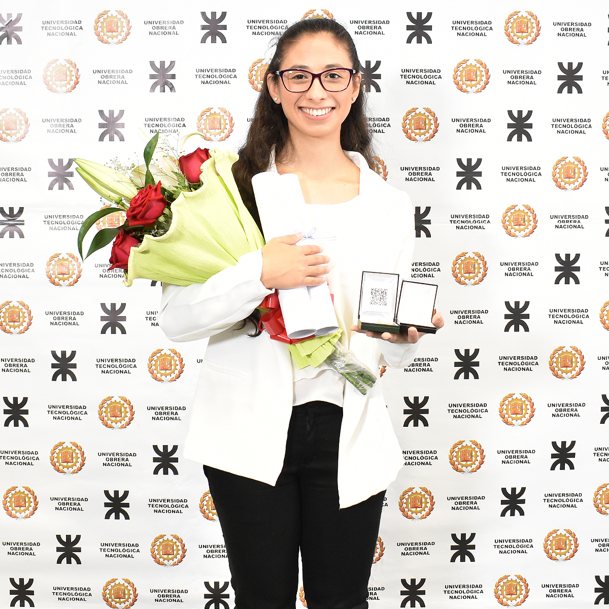 Asimismo, a la graduada de UTN Regional Córdoba, Daniela Paola Cativa Vasquez de Ingeniería Industrial se le entregó una medalla de oro por haber obtenido el promedio más alto entre los exalumnos seleccionados.