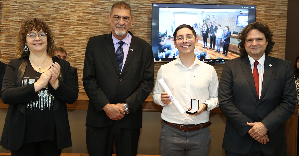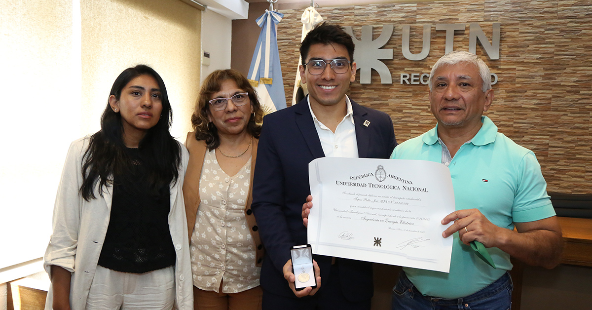 La medalla de oro fue otorgada a Agustín Gabriel Villarreal, de Ingeniería en Sistemas de Información (UTN Buenos Aires), quien obtuvo el mejor índice de Rendimiento Académico 2024-2025. También recibió la medalla de plata y su certificado de reconocimiento.