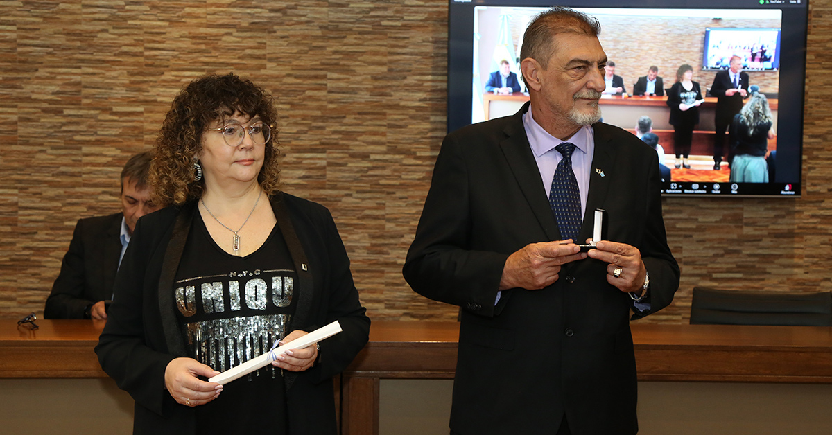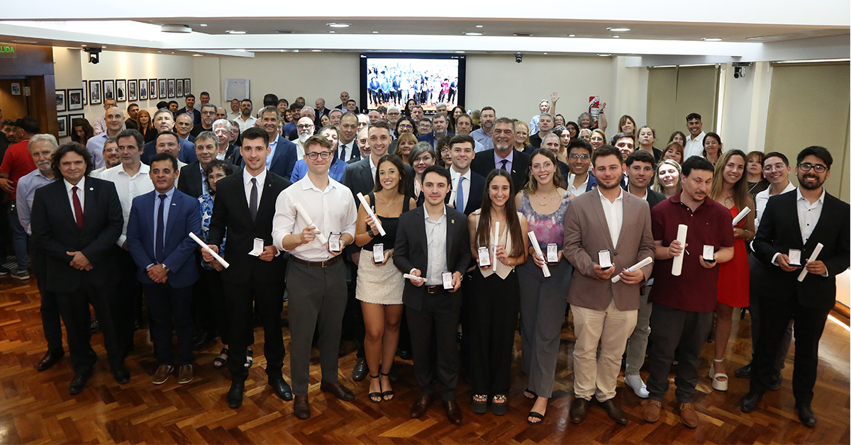 En la entrega de distinciones, Agustín Gabriel Villarreal fue abanderado, Micaela Sofía Glassel (UTN Buenos Aires), primera escolta, y Lucas Martín Pegoraro (UTN Buenos Aires), segundo escolta.